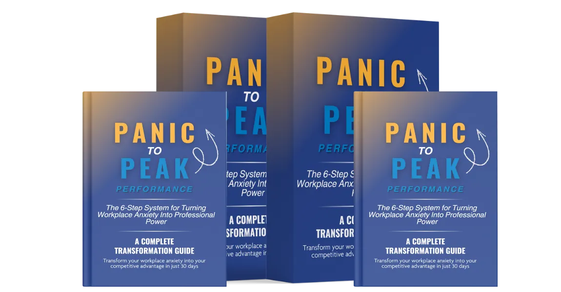 You are getting instant access to the complete "From Panic to Peak Performance" eBook, a step-by-step 6-step system for transforming workplace anxiety into professional power. You’ll also receive the 30-Day Transformation Action Plan, printable quick-reference checklists, daily/weekly tracking templates, and a summary of all tools and techniques.